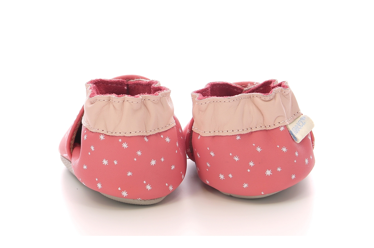 Le modèle Sleepy Moon est une paire de chaussons souples pour bébé fille composé d'une tige en cuir de couleur rose corail et d'une doublure en 70% cuir et 30% textile. Sa semelle souple protège le pied de votre bébé grâce à son intérieur en 100% cuir et son extérieur en cuir enduit. Le modèle Sleepy Moon s'adapte parfaitement au pied de votre bébé grâce à sa fermeture élastique qui permet de l'enfiler facilement, tout en assurant un bon maintien à la cheville.
