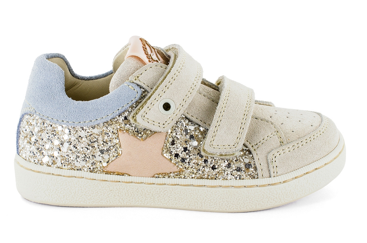 Famille : bassesFermeture : velcros scratchsChaussant : NormalPointure : normalDoublure : cuirSemelles amovible : nonSemelles intérieur : cuirMatiere : Cuir + GlitterCouleur : BeigeRéférence : 8403901