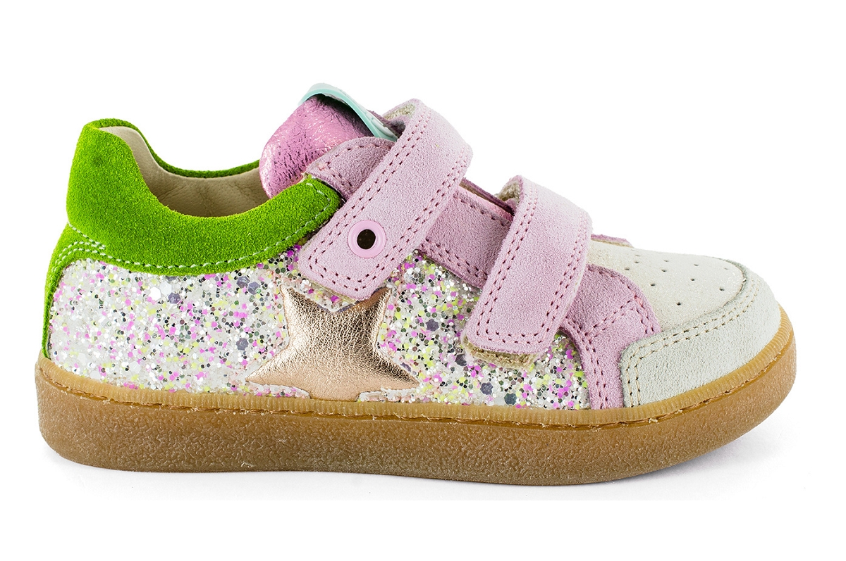 Famille : bassesFermeture : velcros scratchsChaussant : NormalPointure : normalDoublure : cuirSemelles amovible : nonSemelles intérieur : cuirMatiere : Cuir + GlitterCouleur : RoseRéférence : 8403902